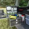 - Cuisine arrière fonctionnelle : équipée d’un système de rangement astucieux et accessible avec le hayon ouvert.