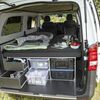 La CampingBox W est conçue pour s'intégrer derrière le siège V3000 (hors Mercedes Vito) en remplacement du couvercle du compartiment arrière. Associée au coussin existant, elle complète le lit du banc V3000.