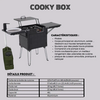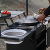 Comprend un évier rétractable, un robinet avec pompe à eau, une cuve à eau, un support pour cuisiner, une étagère, un placard de rangement, et des pieds amovibles pour une parfaite stabilité sur tous les terrains.