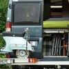 La plateforme coulisse latéralement, permettant l'ouverture complète des portes arrière même avec la moto chargée.