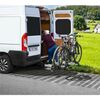 Glissières extensibles avec une course d'environ 70cm permettant l'ouverture des portes battantes (jusqu'à 85cm de large) et l'accès au coffre, même avec les vélos fixés.